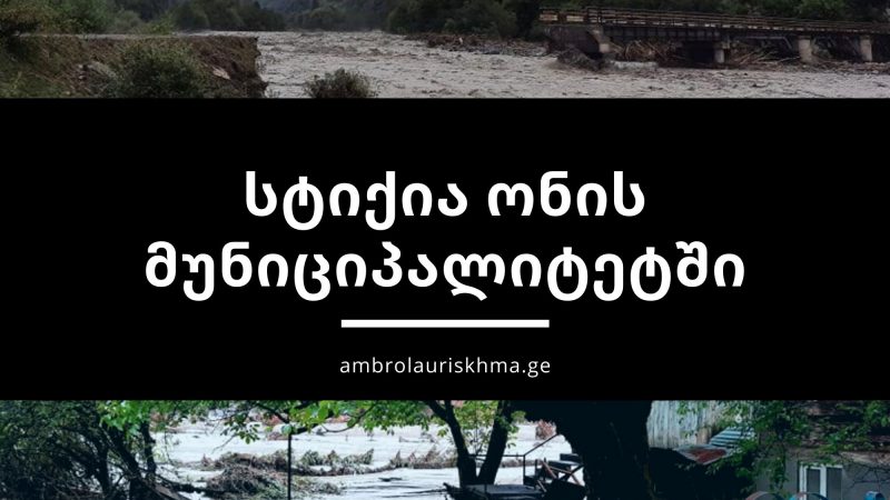 დასრულების ეტაპზეა სტიქიის შედეგად დაზიანებული ონის წყალმომარაგების ცენტრალური მაგისტრალის რეაბილიტაციის სამუშაოები. უკვე დამონტაჟდა 200 მეტრი ფოლადის მაგისტრალი რთულ რელიეფურ ადგილებში, უახლოეს პერიოდში კი სრულად აღდგება ჟიჟორეთის სათავე ნაგებობა. ამასთან, მიუხედავად არსებული დაზიანებებისა, ონის მუნიციპალიტეტში სტიქიის შედეგად დაზარალებულ მოსახლეობას წყალი, ალტერნატიული ქსელის საშუალებით, მეორე დღიდანვე სტაბილურად მიეწოდებოდა.