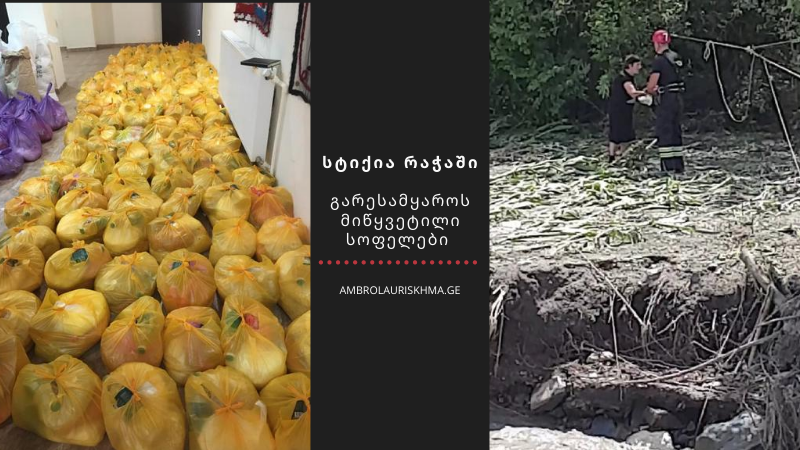ონის მუციპალიტეტის მერია პროდუქტებს სტიქიით დაზარალებულ სოფლებს გადასცემს. პირველ ეტაპზე პროდუქტი გადაეცემა სოფელ ღების, საკაოს ხეობის, გლოლის და ჭიორის მოსახლეობას. დაახლოებით 600–მდე პაკეტი. მეორე ეტაპი განმეორდება იგივე ფორმით, ან მერია უზრუნველყოფს მოძრავი მაღაზიის გადაყვანას…